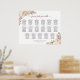 Ce magnifique tableau de 17 places apportera charme rustique, style et beauté à votre réception de mariage. Il présente un joli design boho chic avec des roses d'aquarelle peints à la main, des fleurs et des fleurs dans les tons rose roux, rose poussiéreux, ivoire et mauve, ainsi que des sprigs de feuilles d'eucalyptus et la végétation du jardin. Peut accueillir jusqu'à 170 personnes avec 10 places par table. Le titre est imprimé en calligraphie script élégante et il y a de l'espace pour les noms du couple et la date mariage en bas. Merveilleuse façon d'ajouter élégance et grâce tout en facilitant pour vos invités à trouver leurs sièges.