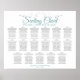 Faites de votre réception de mariage une belle avec ce tableau de sièges. Conçu dans le cadre de notre Turquoise & Grey Elegant Wedding Suite, il présente un design simple et élégant avec du texte turquoise ou turquoise & gris sur un arrière - plan blanc avec une bordure florale en faux feuille argent. Ce graphique montre les affectations de table afin que vos invités aient un temps facile à trouver la bonne table.