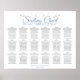 Faites de votre réception de mariage une belle avec ce tableau de sièges. Conçu dans le cadre de notre Suite de Mariage Elégante Bleue & Gris, il présente un design simple mais élégant avec du texte bleu clair & gris sur un arrière - plan blanc avec une bordure florale en faux feuille argent. Ce graphique montre les affectations de table afin que vos invités aient un temps facile à trouver la bonne table.