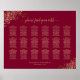 Ce tableau mariage compte 18 tables pouvant accueillir jusqu'à 180 personnes et 10 places par table. Le design se compose d'une palette de couleurs or et marron, bordeaux ou rouge vif simple mais élégante, complétée par un titre de calligraphie de script élégant et une filigree en faux feuille de dentelle ornée dans chaque coin. Les noms du couple et la date du mariage peuvent être placés sous le dessin. C'est une façon merveilleuse d'ajouter du raffinement, du style et de la classe à votre réception tout en permettant à vos invités de trouver leurs tables sans effort.