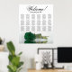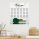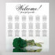 Améliorez l'élégance, le romantisme et l'atmosphère de votre fête mariage avec ce tableau de 18 places, qui peut accueillir jusqu'à 180 personnes, avec chaque table de 10 places. Le design présente un magnifique motif floral contemporain qui comprend un rose solitaire à longue tige dans une riche teinte vert émeraude, placé horizontalement et réfléchissant dans un bassin d'eau. Le titre est écrit en calligraphie de script élégante et dit "Bienvenue! Veuillez trouver votre siège", avec le nom des jeunes mariés et la date du mariage en bas. Ce tableau de sièges offre une excellente occasion d'accueillir chaleureusement vos invités et de les aider à trouver facilement leurs sièges respectifs.