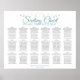 Faites de votre réception de mariage une belle avec ce tableau de sièges. Il présente un design simple mais élégant avec du texte turquoise ou turquoise & gris sur un arrière - plan blanc avec une bordure florale en faux feuille argent. Ce graphique montre les affectations de table afin que vos invités aient un temps facile à trouver la bonne table.