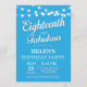 18e anniversaire Invitation avec String Lights Arrière - plan bleu. Fête d'anniversaire de la femme. Dix-huitième et fabuleux. N'importe quel âge. Pour plus de personnalisation, cliquez sur le bouton "Customiser" et utilisez notre outil de conception pour modifier ce modèle.