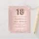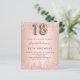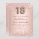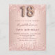 Une invitation moderne, élégante et glamour pour la fête du 18e anniversaire d'une fille. Un faux rose or à l'apparence métallique arrière - plan avec une élégante parties scintillant d'or faux rose goutte à goutte, peinture goutte à goutte. Le nom est écrit avec un rose moderne de couleur or foncé à la main écriture style. Personnalisez et ajoutez les détails de votre fête. Le numéro 18 est écrit avec une police de style ballon, script.