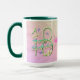 Un arc-en-ciel impressionnant de couleurs, de fleurs roses et de papillons lavande remplit cette tasse d'anniversaire joyeuse pour 18e fillette. Le nom de la fille d'anniversaire en rose peut être personnalisé en modèle fourni. Vous pouvez également profiter des cadeaux et cartes disponibles dans la section Anniversaire de mon studio sur Zazzle. ©AnuraDesignStudio Tous droits réservés