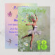 Une belle fée de ballerine dansant sur une invitation à la fête d'anniversaire. La ballerine porte un tutu blanc, et a des traces de fleurs venant de ses cheveux. Elle danse à travers un pré rempli de marguerites.