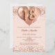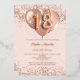 For an elegant 18th birthday. A soft, blush rose gold background. Decorated with rose gold, pink balloons. Personalize and add a name, and party details. The name is written with a hand lettered style script, number 18 with balloon style fonts. The invitations text with real rose gold foil.