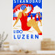 C. 1929 Affiche Art Déco faisant la promotion de la plage de Strandbad Lido à Luzern / Lucerne Suisse, au bord du lac.