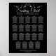 Faites de votre réception de mariage une belle avec ce tableau de 19 places. Conçu dans le cadre de notre Silver Foil Elegant Wedding Suite, il présente un design simple mais élégant avec du texte gris argenté pâle sur un arrière - plan noir avec une bordure florale en faux feuille argent. Ce graphique montre les affectations de table afin que vos invités aient un temps facile à trouver la bonne table.