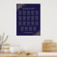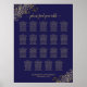 Ce magnifique tableau de sièges mariages propose des assignations de table pour 190 personnes, avec 10 personnes à chaque table. Le design est simple mais élégant avec du texte doré sur un arrière - plan bleu marine. Il y a des boucles et des tourbillons en dentelle or faux feuille dans les coins et la calligraphie de script fantaisie lisant "s'il vous plaît trouver votre table."