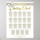 Faites de votre réception de mariage une belle avec ce tableau de sièges. Conçu dans le cadre de notre Suite Mariage White & Gold Ribbon, il présente un design simple mais élégant avec du texte en or sur un arrière - plan blanc avec un ruban blanc et un arc avec garniture en or. Ce graphique montre les affectations de table afin que vos invités aient un temps facile à trouver la bonne table.