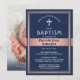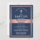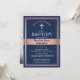 Annoncez la naissance de votre petite fille, de votre famille invitation et de vos amis au baptême avec cette élégante photo personnalisée bleu marine et fausse invitation rose feuille d'or. Tout le texte est simple à customiser, de sorte qu'il peut inclure n'importe quel libellé concernant le service et la réception. Cette invitation au baptême et à la faire-part de naissance combinées est un moyen chic et élégant de partager toutes les informations sur une carte, plutôt que deux. Le design bleu marine et rose comprend 1 photo de votre choix, un faux ruban, une typographie d'inspiration art déco et une calligraphie de script moderne. La photo du bébé et les détails de naissance, tels que la date d'arrivée, le poids et la longueur apparaissent sur le dos. Veuillez noter que l'or rose est imprimé de couleur rose, et non de papier métallique. Félicitations pour l'arrivée de votre nouveau petit !