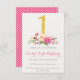 Invitation florale or et rose pour le premier anniversaire de n'importe quelle petite fille