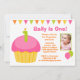 Cette adorable invitation à la fête du premier anniversaire peut être personnalisée avec la photo de votre enfant. Comprend un cupcake rose et des ballons d'anniversaire. Fait un grand gardien de la fête de ton enfant pour son premier anniversaire.