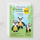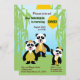 Les ours de panda noirs et blancs sont très chers aux enfants. Invitation votre famille et vos amis à votre fête d'anniversaire de famille de garçon doux en utilisant cette invitation mignonne. Une famille d'ours de panda habillés à la fête célèbre la première année de vie de leur petit ours de panda dans la forêt de bambou ! Le petit tient un ballon. Tous les mots de cette invitation sont faciles à customiser avec vos données personnelles comme les noms, la date et l'heure; changer la police ou la couleur comme vous voulez. L'envers présente la silhouette de la forêt de bambou, un ballon jaune qui monte en l'air et des confettis colorés.