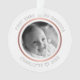 Cet ornement de Noël personnalisé présente un design d'or rose faux moderne. Personnalisez le nom, l'année et la photo. C'est à double face. L'avant aura une photo en noir et blanc et l'arrière a votre photo en couleur originale. Ce modèle fonctionne le mieux avec les photos au format paysage avec le sujet au centre.