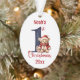 1er ornement de Noël pour un petit garçon avec joli ours en peluche de Noël avec chapeau de Père Noël et grand marine numéro un. Personnalisez facilement le texte. - Kate Eden Art