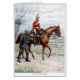lithographie de fin du XIXe siècle représentant un villageois donnant des indications à un membre des 1ers Royal Dragoons de l'armée anglaise à l'époque de l'Empire anglais.