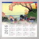 Square poster with 2016 calendar and Old japanese print by the Japanese artist Katsushika Hokusai
