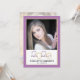 Cette invitation moderne à la fête de remise de diplômes comprend une photo carré sur le devant et une photo verticale complète sur le dos. Le thème des couleurs est le violet et l'or avec l'année de graduation de 2020 apparaissant dans un script élégant.