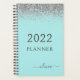 2022 Cahier à spirale de nom et initiale de monogramme de paillettes argentées et bleu aqua sarcelle. C'est le cadeau parfait pour un anniversaire des 16 ans, un mariage, une douche de mariée, un anniversaire, une douche de bébé ou une fête de bachelorette pour quelqu'un qui aime le luxe glamour et les styles chics.