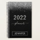2022 Parties scintillant argentée et noire Nom du monogramme ou Carnet initial du calendrier spiral. Cela rend le cadeau parfait pour 16 ans, mariage, douche nuptiale, anniversaire, baby shower ou bachelorette pour quelqu'un qui aime le luxe glam et les styles chic.