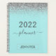 2022 Argent et Turquoise Aqua Blue Sparkle Parties scintillant Nom du monogramme ou Carnet initial du calendrier spiral. Cela rend le cadeau parfait pour 16 ans, mariage, douche nuptiale, anniversaire, baby shower ou bachelorette pour quelqu'un qui aime le luxe glam et les styles chic.