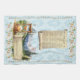 Serviette de cuisine bleu damassé / serviette de calendrier. Proverbes 16:9 "Dans leurs coeurs, les hommes planifient leur route, mais l'Éternel établit leurs pas." Verre d'heure avec scène alpine, pins, marguerites, oiseau et écritures défilent. Voir la nouvelle version 2025 de cette serviette calendrier : https://www.zazzle.com/2025_calendar_towel_alps_mountains_proverbs-256116973670686925