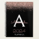 2024 Or rose - Rose saumon et noir Étincelant Paillettes Monogramme Nom et Initiale Cahier en spirale. C'est le cadeau idéal pour un 16e anniversaire, un mariage, une fête de fiançailles, un anniversaire de mariage, une baby shower ou une soirée entre filles pour quelqu'un qui aime le luxe glamour et les styles chics.