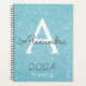 2024 Turquoise Bleu Aqua Pailleté Carnet de notes et planificateur de monogramme et initiale en spirale. C'est le cadeau idéal pour un anniversaire des 16 ans, un mariage, une douche de mariée, un anniversaire de mariage, une baby shower ou une soirée de bachelorette pour quelqu'un qui aime le luxe glamour et les styles chics.