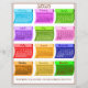 2025 Calendrier Bolt Font 12 Couleurs Mois Papier à lettres Papier à lettres Taille de lettre En-tête de lettre Boucles non roulées, en 12 couleurs vives, extatiques, joyeuses, chacune a un mois, chaque mois est une couleur saisonnière différente, le nom du mois est au-dessus du boulon, avec les numéros du mois dans les espaces, les jours de la semaine sur le rang supérieur, en utilisant ma propre "Police Fabric" pour toutes les lettres et tous les chiffres, que j'ai initialement pour mon logo Fabricated Frames / fabricatedframes.com en 2000, en l'élargissant pour les calendriers en 2013, et fini, avec la "Police Fabric" qui vous pouvez acheter, télécharger le fichier .otf avec 110 caractères, inclus avec 114 caractères SVG, et sur vos appareils applications / programmes qui changent / customisent les polices. La "Font de Tissu" est simulée des longueurs de tissu, pliées et drapées pour former les 94 lettres et les numéros du clavier, plus 15 symboles supplémentaires, et l'espace lol. Merci! Kristie Hubler artiste, propriétaire de Fabricated Frames, auteur, concepteur de produits, inventeur du cadre photo en tissu lavable, convertible cadre de table pin ornement pour petites photos, et créateur de "Fabric Font", copyright protégé 2000. made edframescom at gmail dot com https://zazzle.com/store/fabricatedframes/products fabric, bolt, couture, font, calendrier, 2025, année,, planificateur, date, papier