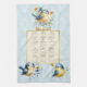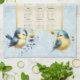 2025 Calendrier serviette à thé - Folk birds serviette de cuisine décorative. Arrière - plan de motif damassé bleu. Merci d'avoir cherché.