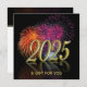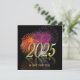Flambant précieux Nouvel An 2025 avec typographie élégante lettre/numéro d'or 3D 2025 avec un feu d'artifice coloré sur un arrière - plan noir.