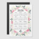 2026 Calendrier Aquarelle Rose Botanique Vert