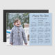 Envoyez vos souhaits pour une Bonne Année avec une carte magnétique du calendrier 2026 personnalisée avec votre photo à gauche et votre salutation et votre nom au-dessus du calendrier à droite. Remplacez l'exemple d'image et de texte dans la barre latérale. Le texte personnalisé se trouve dans une police de script manuscrite noire cool. Ci-dessous, un calendrier noir sur un arrière - plan bleu clair. Pour modifier la couleur bleue du bébé, cliquez sur "Modifier à l'aide de l'outil de conception" et sélectionnez une couleur arrière - plan dans la barre latérale. Cliquez sur "Terminé" puis sur "Ajouter au panier" pour acheter votre aimant de calendrier customisé. Carte magnétique modèle et calendrier de conception copyright © Claire E. Skinner. Tous droits réservés. Photographie © Storytree Studios, Stanford, CA