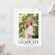 A classic graduation commencement invitation featuring a custom photo and traditional typography. This elegant design presents a formal, minimalist layout and timeless sense of style. Upload your own photo, and personalize the text with the graduate's name, parents' names, qualification title, educational institution, graduation year, and ceremony details. Printing colors: black and white, or customize the color to match your university, school, or college. Available as a printed card or a digital download. Explore the online collection for matching design templates!