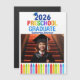 This fun 2026 preschool graduation announcement magnet features a cool grad cap above colorful writing and a row of crayons in rainbow. Cute PreK graduate keepsake magnets in fun colors for the last day of elementary school with your kid's photo and name personalized in blue. Congratulations to our Pre-K graduate!