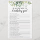 Achetez ce jeu de verdure éditable et profitez de haute qualité 20 Questions A propos de la carte fille anniversaire pour votre événement! C'est un modèle de jeu, Vous pouvez changer les questions comme vous le souhaitez! Ambiance verdoyante aquarelle.