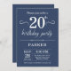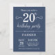 Invitation du 20e anniversaire avec Arrière - plan bleu. Anniversaire adulte. Hommes ou Femmes Anniversaire Invitation. 13ème 15ème 16ème 18ème 20ème 21ème 30ème 40ème 50ème 60ème 70ème 80ème 90ème 100ème, Tout âge. Pour plus de personnalisation, cliquez sur le bouton "Customiser" et utilisez notre outil de conception pour modifier ce modèle.