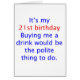 " C'est mon 21ème anniversaire, m'achetant qu'une boisson serait la chose polie à faire." La conception humoristique pour cela 21 ans qui aime inciter des personnes à rire et si une boisson libre sort de l'affaire ainsi que ce soit.