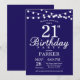 21ème anniversaire Invitation avec lumières à cordes. Arrière - plan bleu marine. 13ème 15ème 16ème 18ème 20ème 21ème 30ème 40ème 50ème 60ème 70ème 80ème 90ème 100ème, Tout âge. Pour plus de personnalisation, cliquez sur le bouton "Customiser" et utilisez notre outil de conception pour modifier ce modèle.