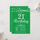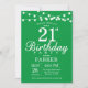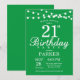 21e Invitation d'anniversaire avec des lampes à cordes. Arrière - plan vert. Invitation anniversaire d'élégante femme ou homme. 13e 15e 16e 18e 20e 21e 30e 40e 50e 60e 70e 80e 90e 100e, n'importe quel âge.