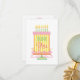 Un grand gâteau d'anniversaire jaune et rose avec des fleurs qui dit "merci". Le dos de la carte est un cadeau avec un message de remerciement et un nom customisé.
