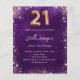 Célébrez un 21ème anniversaire spécial avec cette magnifique invitation, parfait pour une soirée élégante. L'arrière - plan violet profond présente une belle texture inégale, accentuée par l'or rose et la fausse parties scintillant dorée pour une touche de pétillant. Le nom est écrit dans un script délicat et écrit à la main, ajoutant une touche personnalisée et sophistiquée. Customisez l’invitation en ajoutant le nom de la fille d’anniversaire et tous les détails importants de la fête. Ce design luxueux donne le ton d'une fête inoubliable. 1 feuille = 1 invite imprimé bord à bord.