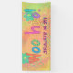 Amusez-vous pour un anniversaire avec cette bannière d'anniversaire WooHoo. Customiser pour une année et le nom (ainsi qu'un événement différent). Le texte "WooHoo" est sur un arrière - plan multicolore orange, corail et jaune avec magenta et fleurs turquoises vertes. La topographie est dessinée à la main et est multicolore d'orange, magenta, bleu vert et jaune.