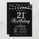 21e Invitation d'anniversaire avec des lampes à cordes. Arrière - plan noir. Invitation anniversaire d'élégante femme ou homme. 13e 15e 16e 18e 20e 21e 30e 40e 50e 60e 70e 80e 90e 100e, n'importe quel âge. Pour plus de personnalisation, cliquez sur le bouton "Customiser" et utilisez notre outil de conception pour modifier ce modèle.