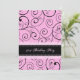 21èmes invitations de fête d'anniversaire de coutume dans le motif noir et rose élégant de remous. Ajoutez vos détails de nom et de partie pour une invitation unique et élégante de fête d'anniversaire.
