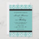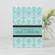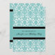21èmes invitations de fête d'anniversaire de coutume dans le bleu de turquoise élégant, motif floral classique noir et blanc de damassé. Ajoutez vos détails de nom et de partie pour 21ème une invitation unique et élégante de fête d'anniversaire.