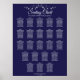 Faites de votre réception de mariage une belle avec ce tableau de 22 places. Dispose d'un design simple mais élégant avec du texte blanc sur un arrière - plan bleu marine avec un faux film argenté fleuri ou bordure. Ce graphique montre les affectations de table afin que vos invités aient un temps facile à trouver la bonne table.
