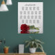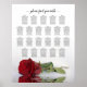 Cet élégant tableau de 22 sièges mariages de table présente une belle photo d'une seule rose rouge reflétant dans l'eau avec des vagues et des ondulations. Le titre dit "s'il vous plaît trouvez votre table" dans la calligraphie de script dentée. Il y a de la place pour les noms des couples et la date du mariage. Ce tableau a des affectations de table pour 220 invités 10 personnes par table.